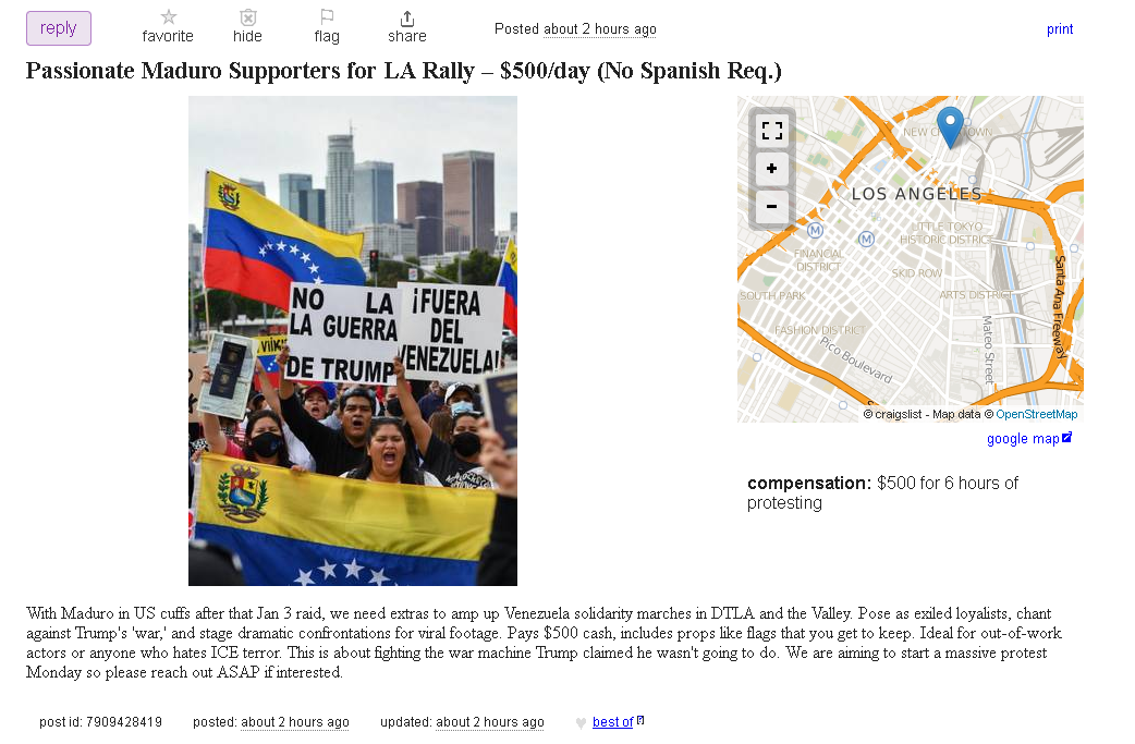 >ad on craigslist>theyre paying 500 dollars for what they are openly calling actors in their protest. even disclosing that fake fights will be staged.>they are literally just hiring random people as actors for 500 dollars to post a fake video online and cause more panic.(not a political opinion. faking protests to deceive us is bad on both sides)