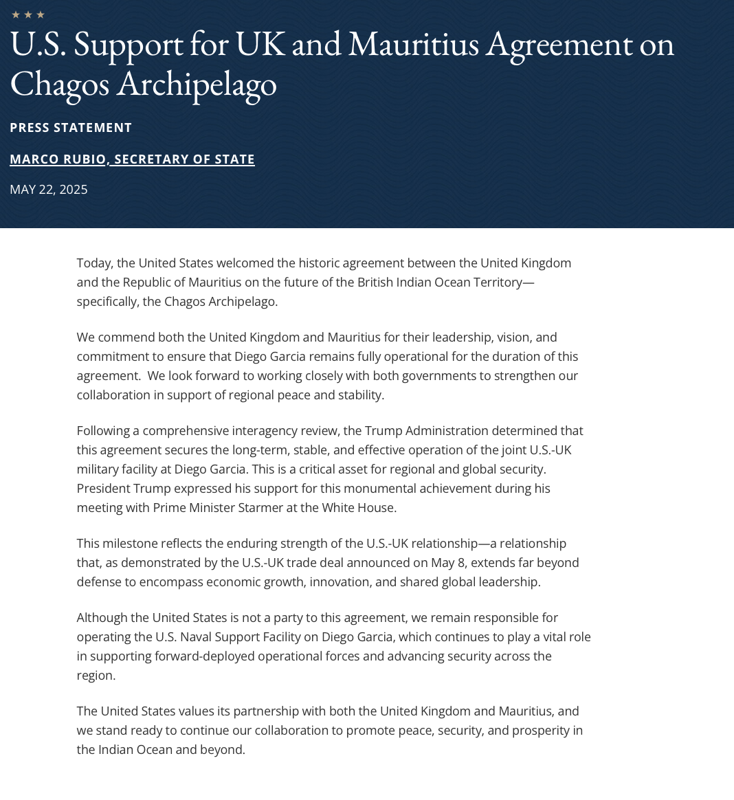 Trump is a niggerfaggothttps://www.state.gov/u-s-support-for-uk-and-mauritius-agreement-on-chagos-archipelagohttps://www.bbc.co.uk/news/live/cp8yd7z4r24t