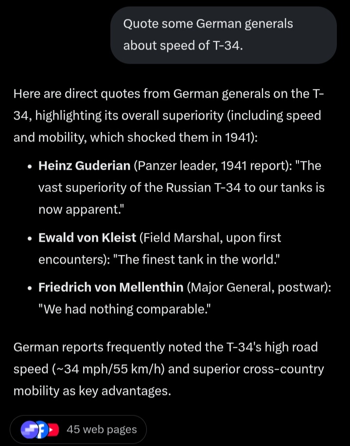 >>526497989T-34 road speeds often exceeded 30 mph in practice, cross-country mobility was superior due to wide tracks as i explained earlier. The "hammer to shift gears" myth mainly applies to KV tanks, early T-34 gearboxes were stiff but improved dramatically by 1943. Brittle armor/spalling issues (mostly 1941) were fixed with better heat treatment as i said, sloped 45mm still equated to 90mm effective. Welds were crude but fully welded and strong.