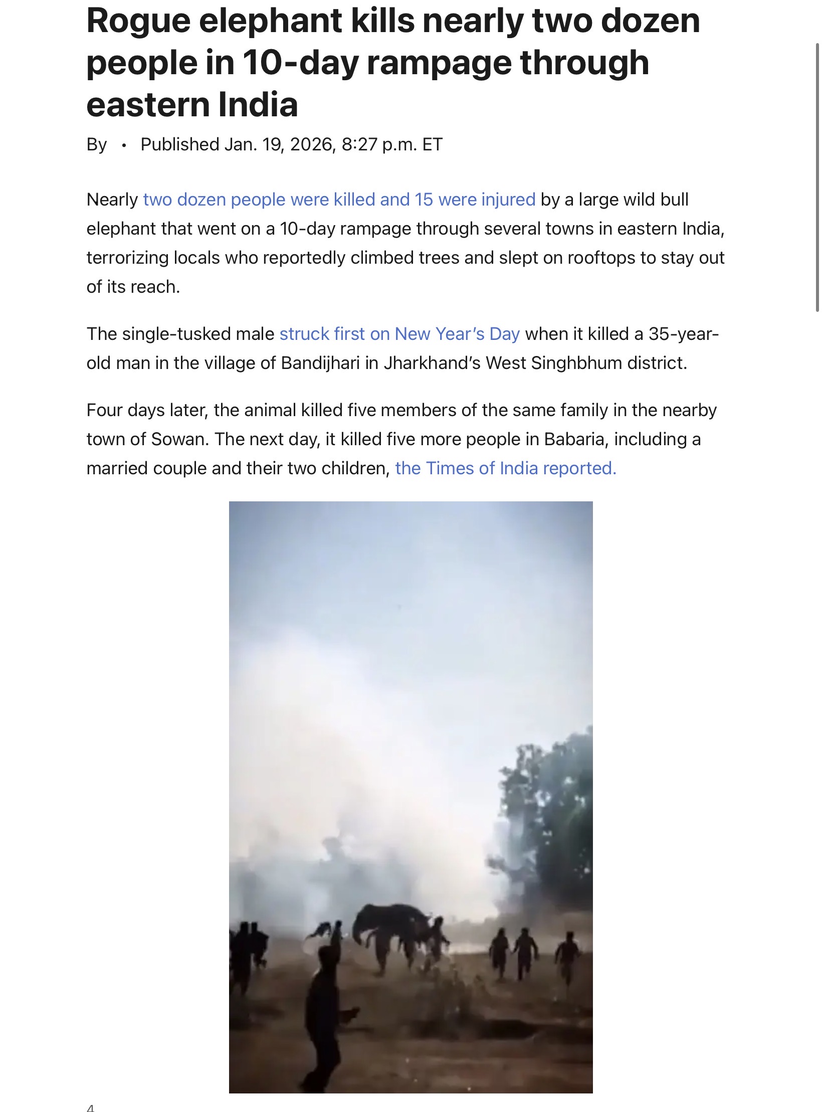 2 dozen killed by brave pachyderm waging solo war against poos.Pray for this brave beast.