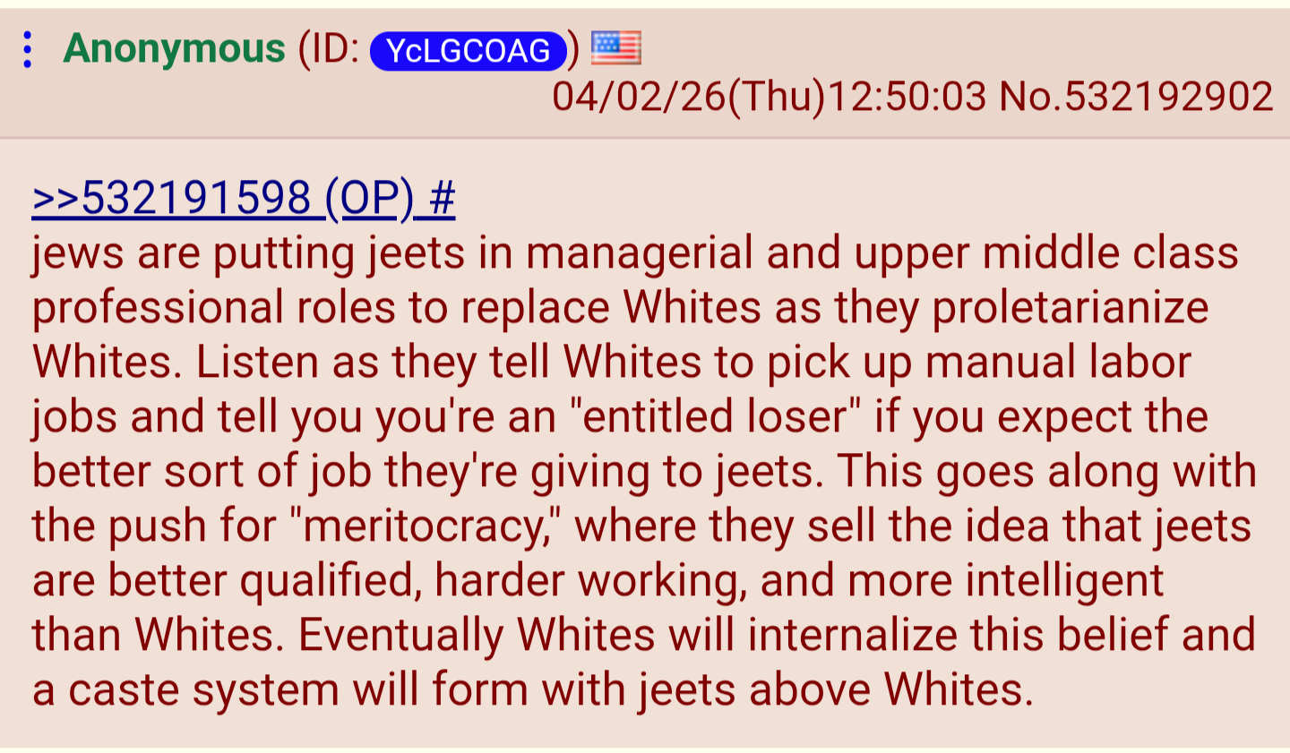 >>532191970It's mostly turks here who work those jobs here but they're not nearly as invasive as jeets even though they do practice nepotism to a higher than usual degree as well>>532193463>to consoom like maddo they actually?jeets are known to be the biggest penny pinchers next to jews and chinks