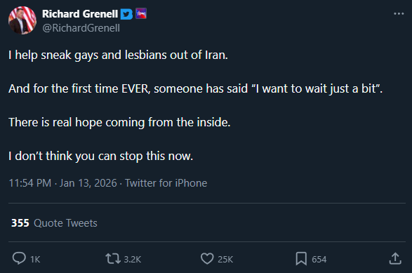 Last: >>525948510Daily discussion of the ongoing situation in Iran.Jan 13:>Trump in meeting with national security team>No water and power>Trump: I have cancelled all meetings with Iranian Officials until the senseless killing of protesters STOPS. HELP IS ON ITS WAY. MIGA... PRESIDENT DONALD J. TRUMP>Iran has just announced the seizure of a huge shipment of Starlink>China, USA calls for it's citizens to evacuate from Iran. More countries suddenly follows.>ESTIMATED: 20.000+ DEAD / ~3500 ISLAMIC FORCES>MASS PUBLIC EXECUTIONS SET FOR TOMORROW ACROSS THE NATION>STARLINK STILL DOWN, BLACKOUT HOLDSJan 12:Comment too long. Click here to view the full text.