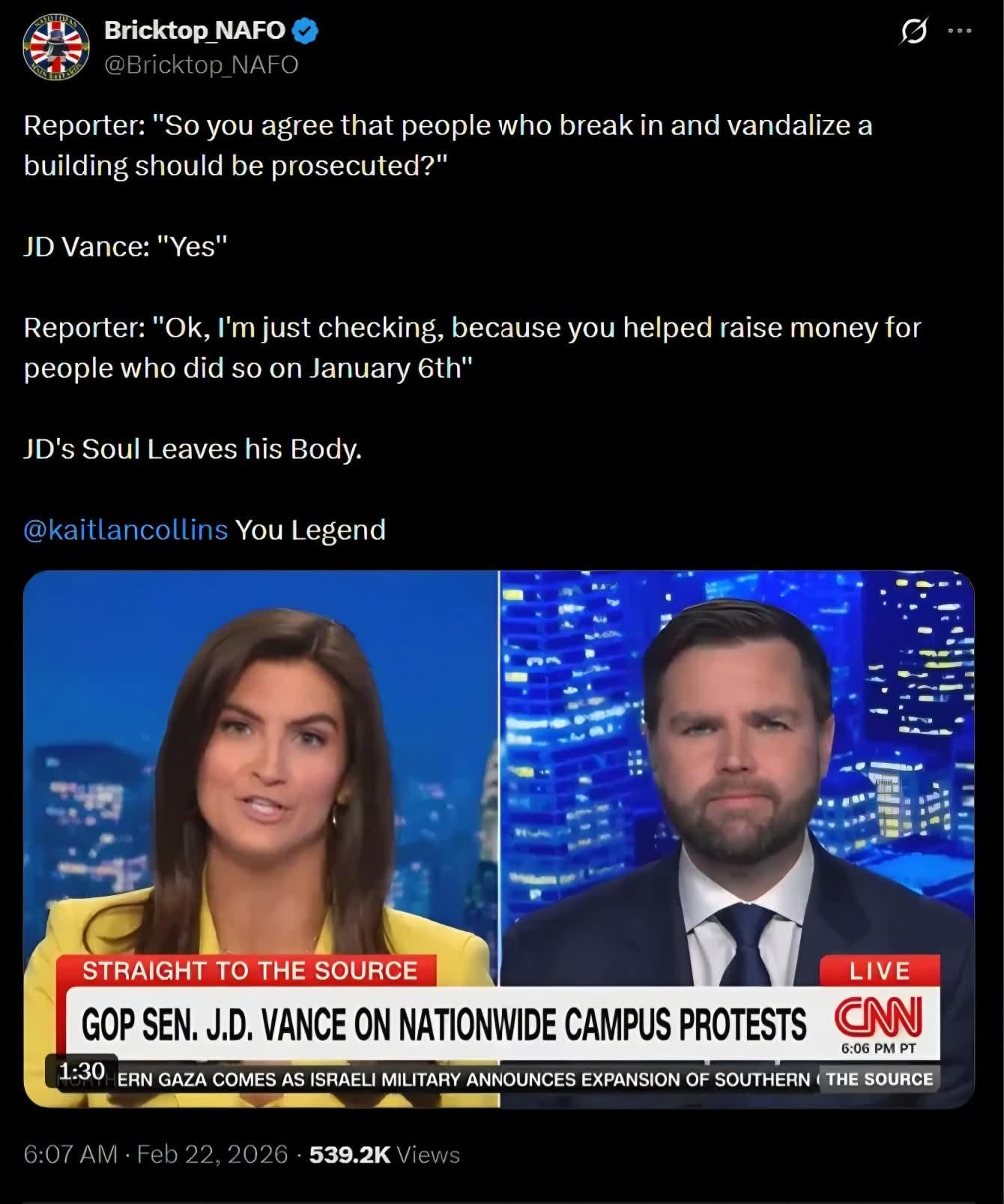The Canadian seems pretty activated, maybe it will go away if you ignore it.Caitlin Collins is a paid retard, people were arrested and prosecuted for Jan 6. Pardoning them did not suddenly give them the years back to their lives, but it did restore some parity to the literal nothing that was inflicted on the summer of love mobs. The issue is that it was clear that if roving bands of mongrel rioters were causing widespread damage to the livelihood and work of law abiding citizens, we were told to just tolerate it, but god forbid you bring a fraction of that chaos to the doorstep of "your betters" in congress. As soon as you do that, it's the literal worst thing since Pearl Harbor. Remember that Bill Clinton pardoned Linda Evans and Susan Rosenberg after they detonated a bomb in that same building in 1983.