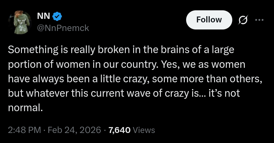 >>529150885>They won't. What has to happen is they are forced to see they are the problem. If you think this will happen, I have bad news.The thing that's more likely is that men dropping out of society are going to accelerate the sexbot/birthing chamber research and permanently remove womens value to society forever.At the point where every woman is competing with the ultrabot 9090 that looks indistinguishable from a golden era playboy bunny of your choice, fucks like a tantric master, and cooks like a 5 star michelin chef...well, their personality will have to hard-carry for the first time in history.