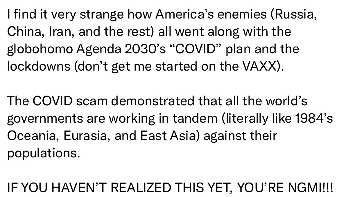 1. /pol/ was wrong and COVID was a serious thing 2. All governments on Earth were in on the COVID scam Which one is it?