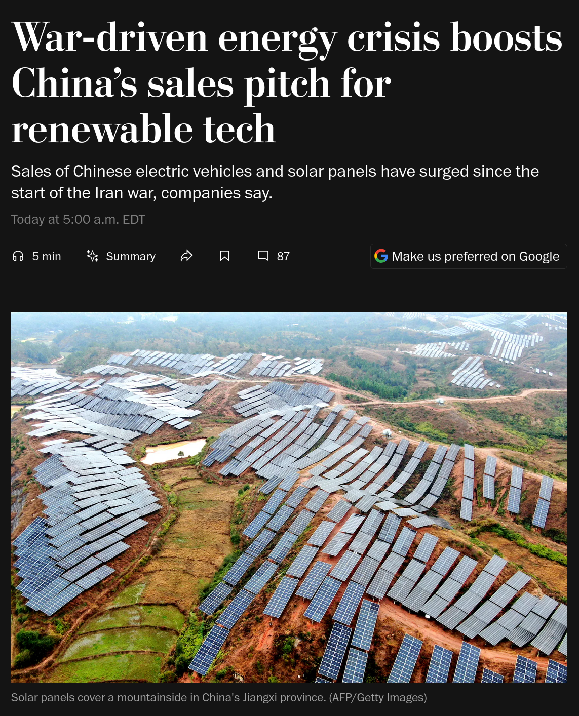 The problem is that renewables (a decent idea) are being used to install communism, limit your range of travel, spending my tax dollars to force the change in behaviour...generally give the government more control over your life. You also can't talk about their weak points without being yelled at by libs.If the switch was more organic it probably wouldn't get as much push back.