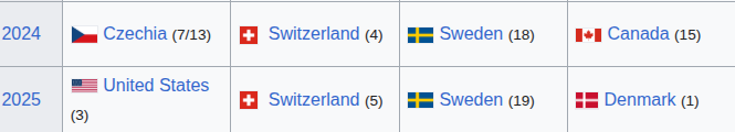 >>532525821The results are the same if you only account for gold...>>532525856Already happened, sort of. The NHL sanctioned 2016 World Cup featured a Team Europe with all the best players from Austria, Denmark, France, Germany, Norway, Slovakia, Slovenia, and Switzerland. They finished second. If Sweden, Finland, Czech Republic (and maybe even Russia) had been included, they would have destroyed all competition easy.