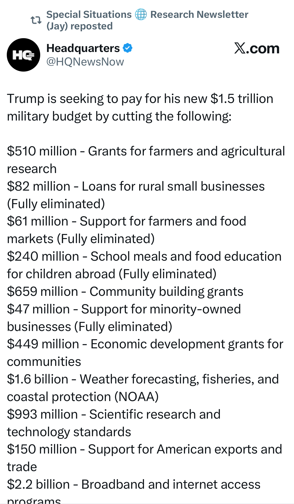 This is what the United States is trying to summon with all those cuts. Be very careful now.