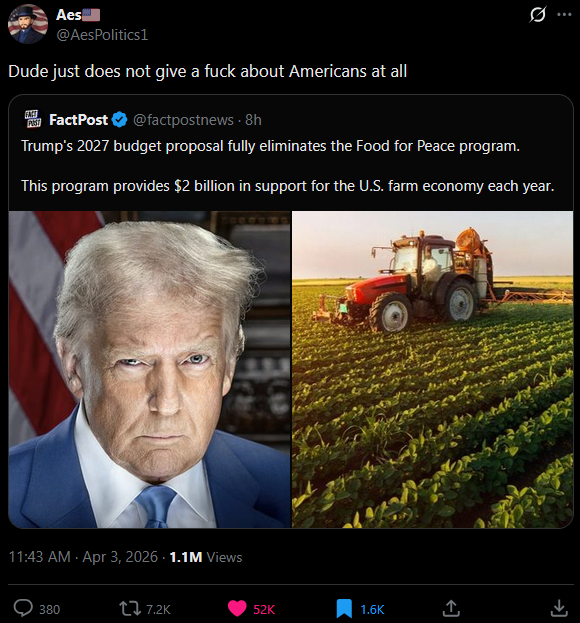 >>532323631>to the detriment of American citizensNot the American farmers getting money from that pot of 2 billion dollars, that's for sure