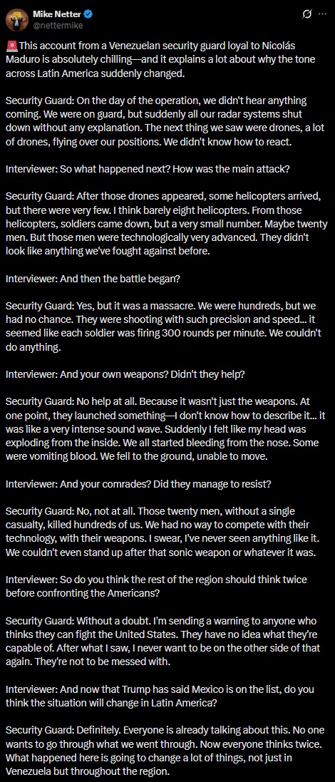 >Be Venezuelan bodyguard>Everything goes dark and quiet>Get blasted with the goybeam >Your comrades start vomiting blood and getting dropped by ZOGbots with million dollar kits and there's nothing you can do about itDo you think this is really how it went down?