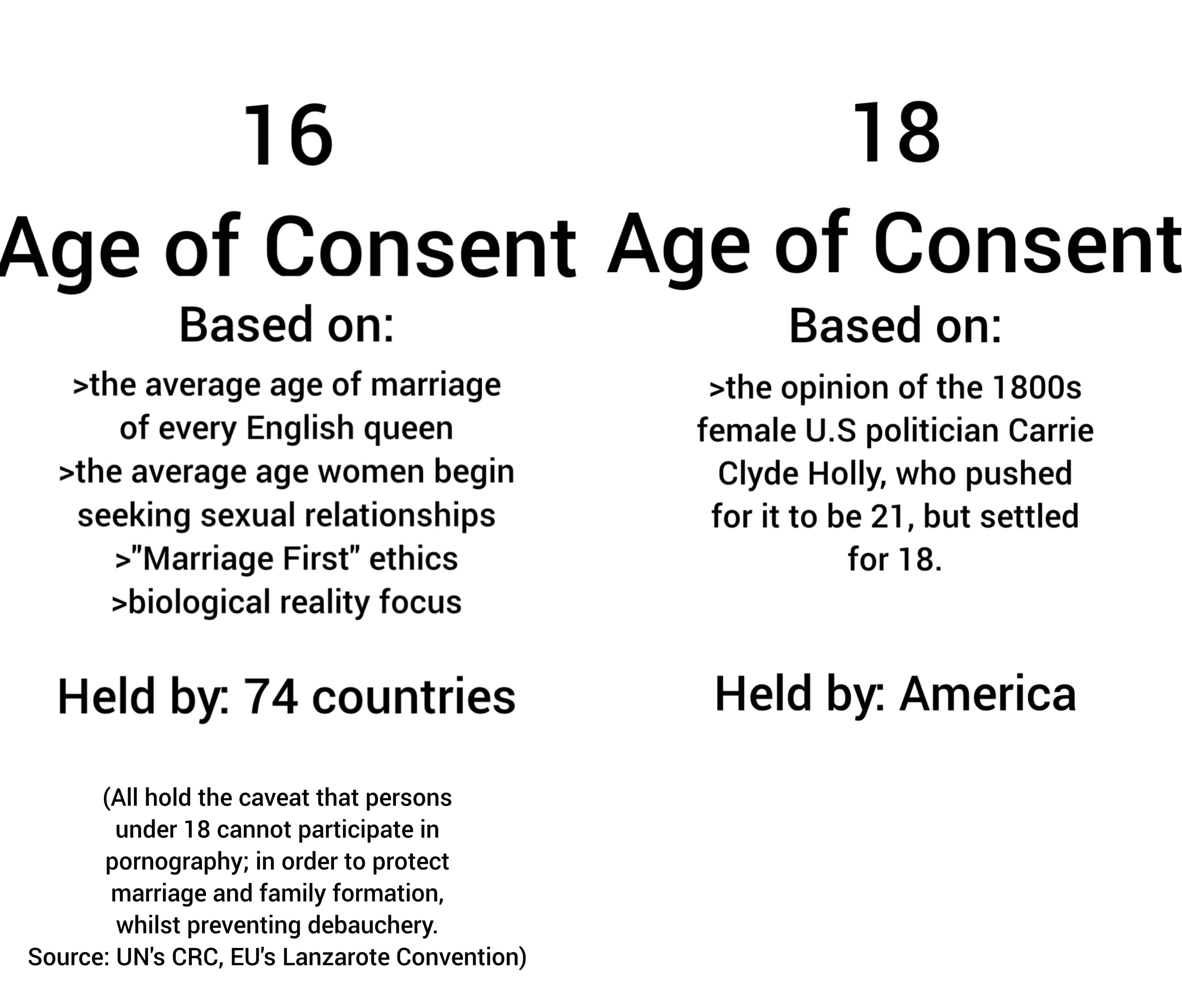 Can we actually discuss this witbout Americans shitting and pissing themselves?>will we see America adopt 16 in our lifetime? Or is it more likely to go up, than down?