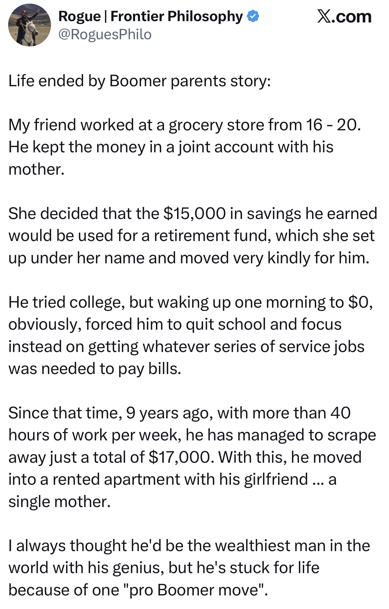 >>526158897Are you a boomer? You completely ignored his point and started ranting about something else. Anon didn't say the guy's whole life is over, but he's right: a retirement fund is worthless.