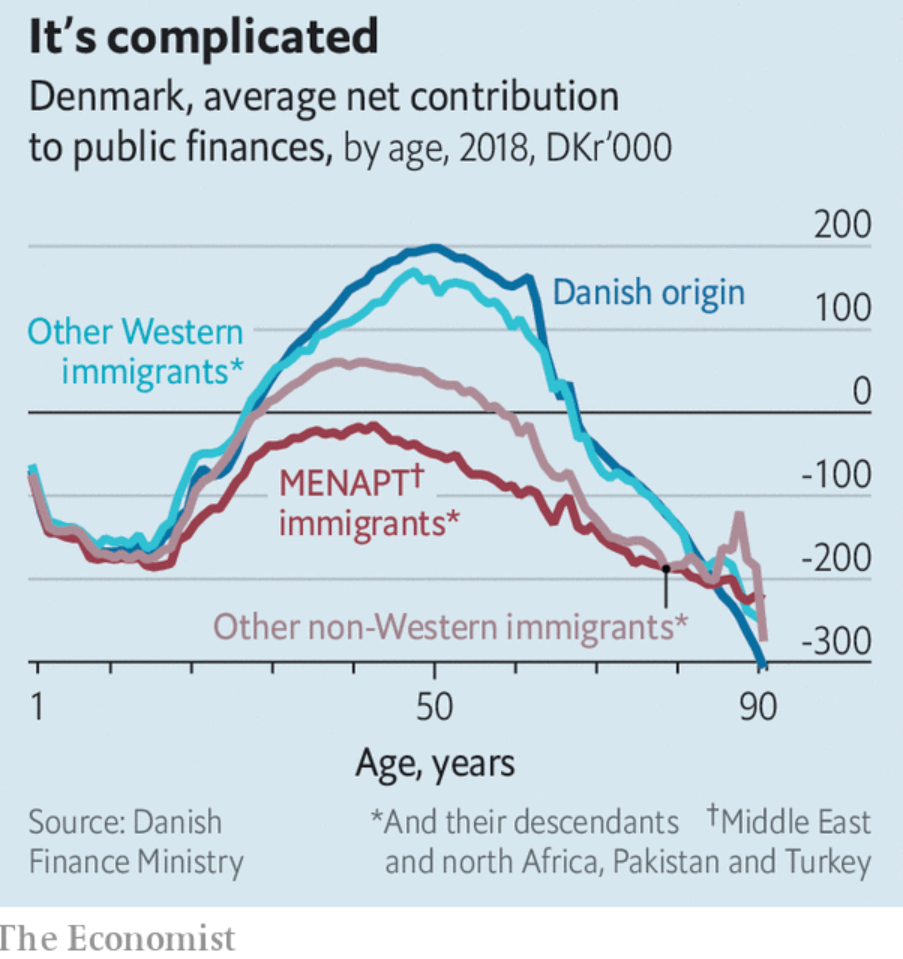 Politicians import people on the premise they will pay our pensions or some shit (not that this is a valid argument to begin with, because: 1) Socialism is theft and needs to banned, 2) A country is more than an economic zone and economic reasons DO NOT justify handing out citizenships).But they're a total net loss! They never contribute anything. (And the ones that do work, their quality of work is shit. It's not German tier.)Despite this data existing proving that the premise is WRONG, politicians DON'T reverse their decisions, because the argument of importing them to pay taxes was ALWAYS a front. This chart together with the continued importing of these people absolutely prove it.What does this chart show?It shows that on average immigrants from countries like Turkey are NEVER - not even for one second in their entire lives in our country (including all their descendents in the 2nd and 3rd generation) - a benefit to us.You can wait YOUR WHOLE LIFE for the one second where one of these immigrants would be a benefit to any citizen in this country, and it simply NEVER comes. They are simply ALWAYS a net loss - even at ages 30 to 50 (after having received hundreds of thousands of euros worth of subsidies and public schooling each), when you should be in your prime to finally start making income, they STILL don't contribute a single net Euro in taxes on average. The opposite: They always cost money, no matter at what stage of their life they're in.LET THAT SINK IN.
