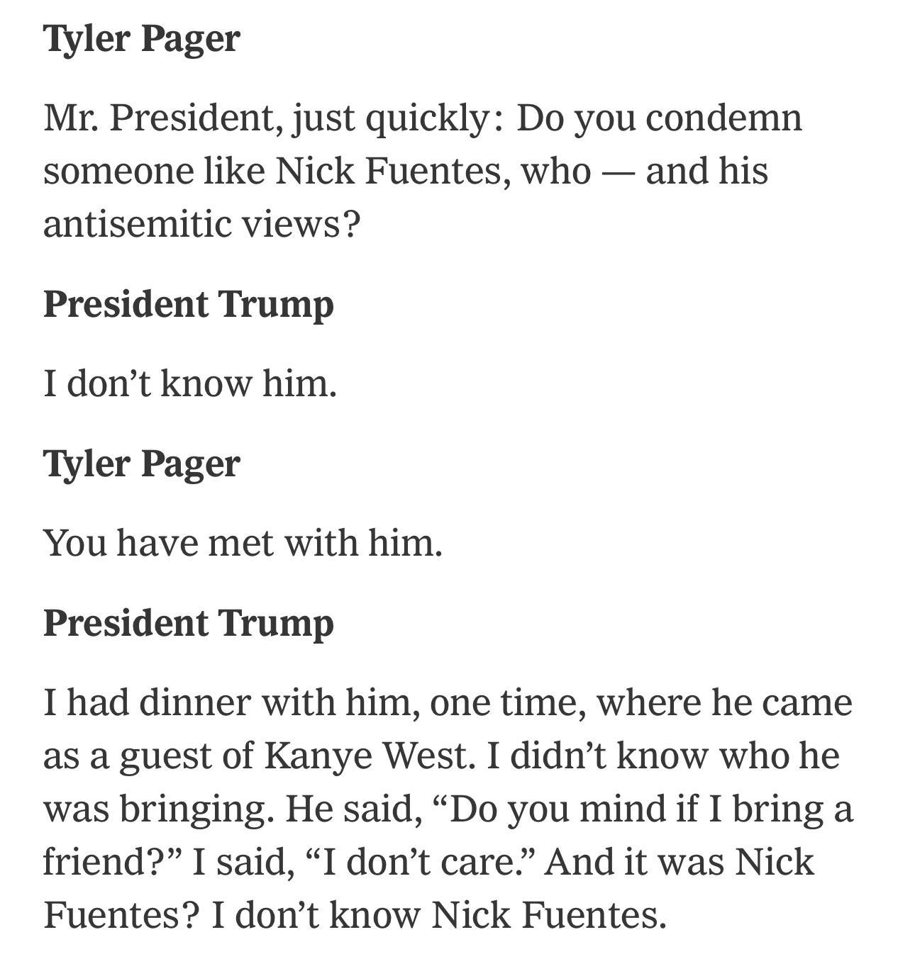 Why does the President still refuse to denounce noted Neo-Nazi Antisemite Nick Fuentes?