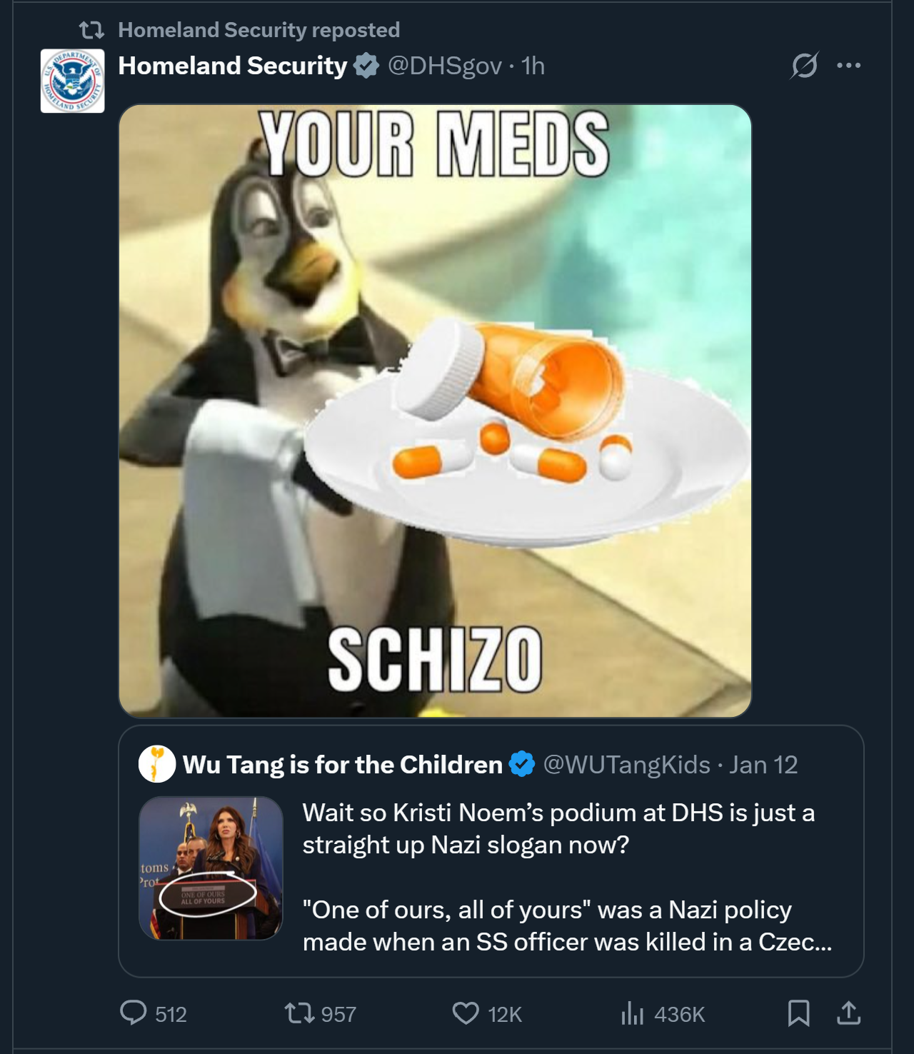 >>526119021>Is one of you guys the owner of DHS's x account?Not saying we are, not saying we aint.