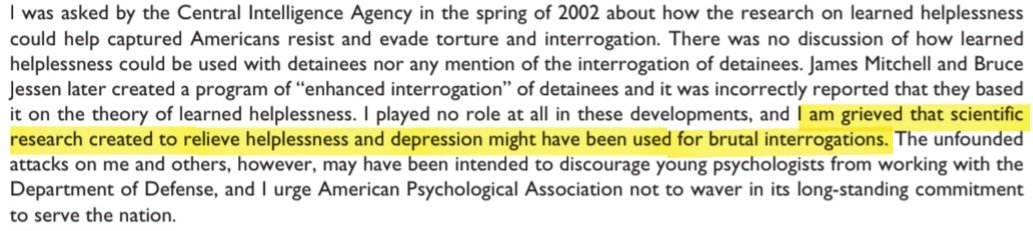 Just a reminder that the psychological concept of "learned helplessness" was of such interest to the CIA that they brought in the scientist who discovered it as a consultant prior to weaponizing it.The more you know!