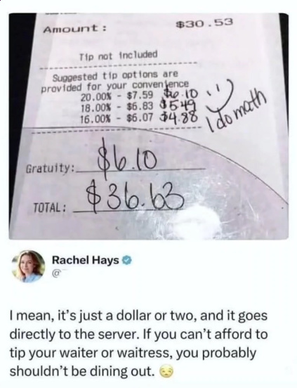 a tip is a bonus for doing a good jobif you're not being paid enough, that's between you and your employer alternatively you could just do the best job you can and be grateful when someone gives you the remainder of their 20 because they didn't fucking have to