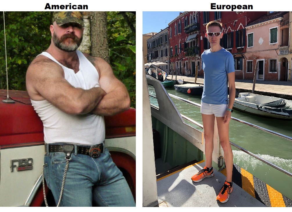 Why do many Europeans look this way? No hair on legs or arms, goofy short shorts and clothing. Zero musculature, feminine appearance. A certain smugness on the face despite these traits...