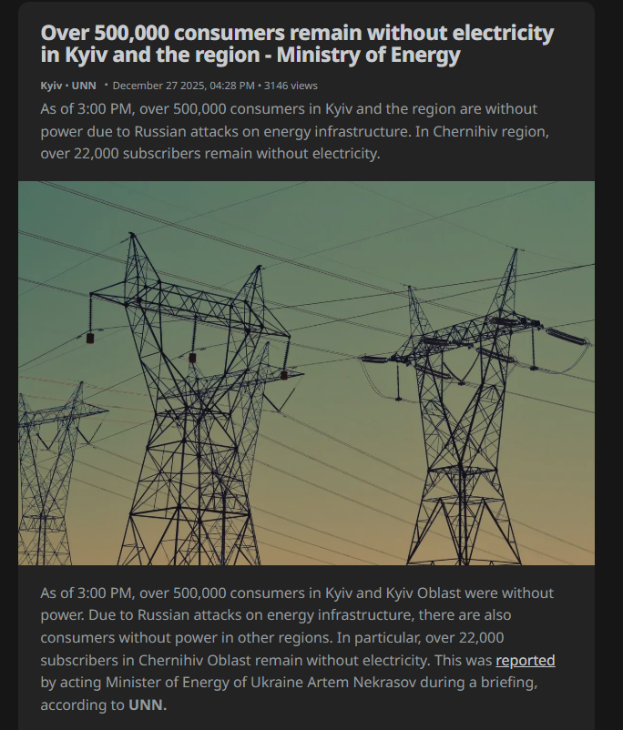 Previous: >>524438478Day 1,403 – Daily assessment: understandingwar.org/analysis/russia-ukraine/#researchMerry Christmas!▶Latest>russians have started using horses for meat assaults due to running out of armour.>Ukraine said it used British Storm Shadow missiles to attack the Novoshakhtinsk oil refinery>russia admits the loss of Kupyansk and nearby villages>putin confirms that russia is ready to import unlimited amounts of indians to make up for all the dead russian soldiers>Zelenskyy revealed for the first time 20 points of the basic document on the end of the war. Among them: Ukraine's sovereignty will be reaffirmed; The number of the AFU will remain at 800k in peacetime; The US, NATO and European signatory states will provide Ukraine with security guarantees (automatic sanctions+military response) that will reflect Article 5; Ukraine confirms that it will remain a nuclear-free state; russia will enshrine a policy of non-aggression towards Europe and Ukraine in all necessary laws and all necessary ratification documents>On December 18, Gerasimov presented even more exaggerated reports than Belousov did on December 17, suggesting that russian military officials may be competing with each other to present putin with optimistic reports - ISW>General Staff of Armed forces of Ukraine had confirmed withdrawal of Ukrainian defense forces from Sieversk, claims Ukrainian military still upheld fire control over the townComment too long. Click here to view the full text.