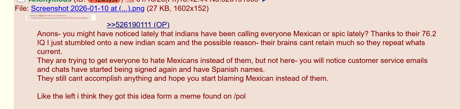 >>526197923I was accused of being a stalker called Adonis in mixed race identity (mulatto) circles because I was doxing women. I have been accused of being Laseranon, Breakroom, Elsa of Arendelle, Jewish, a glownigger, a Chinese woman, a pajeet and also a Mexican on /pol/.Someone was also convinced for three weeks I was a female cousin mine pretending to be me because I was dead of a fetty overdose and they were keeping the lore alive. There was one time I had a female posting as me but she wasn’t a cousin and I wasn’t dead, I was in the ER. She is racist af so no one knew the difference.