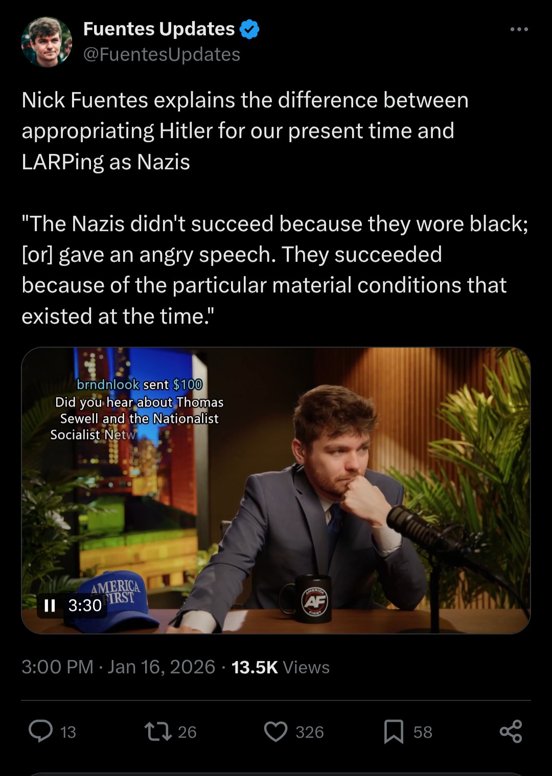 This is complete midwittery. The NSN organized an anti-immigration protest of 50,000 people and already reached the required membership to register as a political party. "The particular material conditions of the time" is a meaningless statement, reminiscent of what leftists and Marxists say about the NSDAP. Let us not forget that Hitler was LARPing as well; as the Roman Empire, as the heirs of the First Reich, as the Italian Fascists. There are actually lessons that we can take from the NSDAP's rise; primarily that organization works. This will not be the end of Thomas Sewell, it will not be the end of White Australia, it will not be the end of the National Socialist Network.