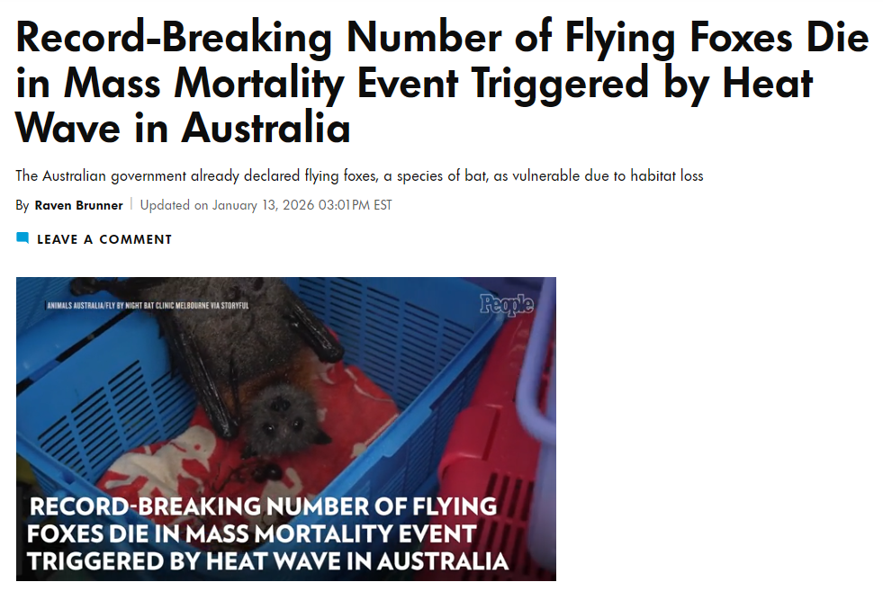 >Record-Breaking Number of Animals Die Every Day in Mass Mortality Event Triggered by Heat Wave in AustraliaAustralia is completely fucked