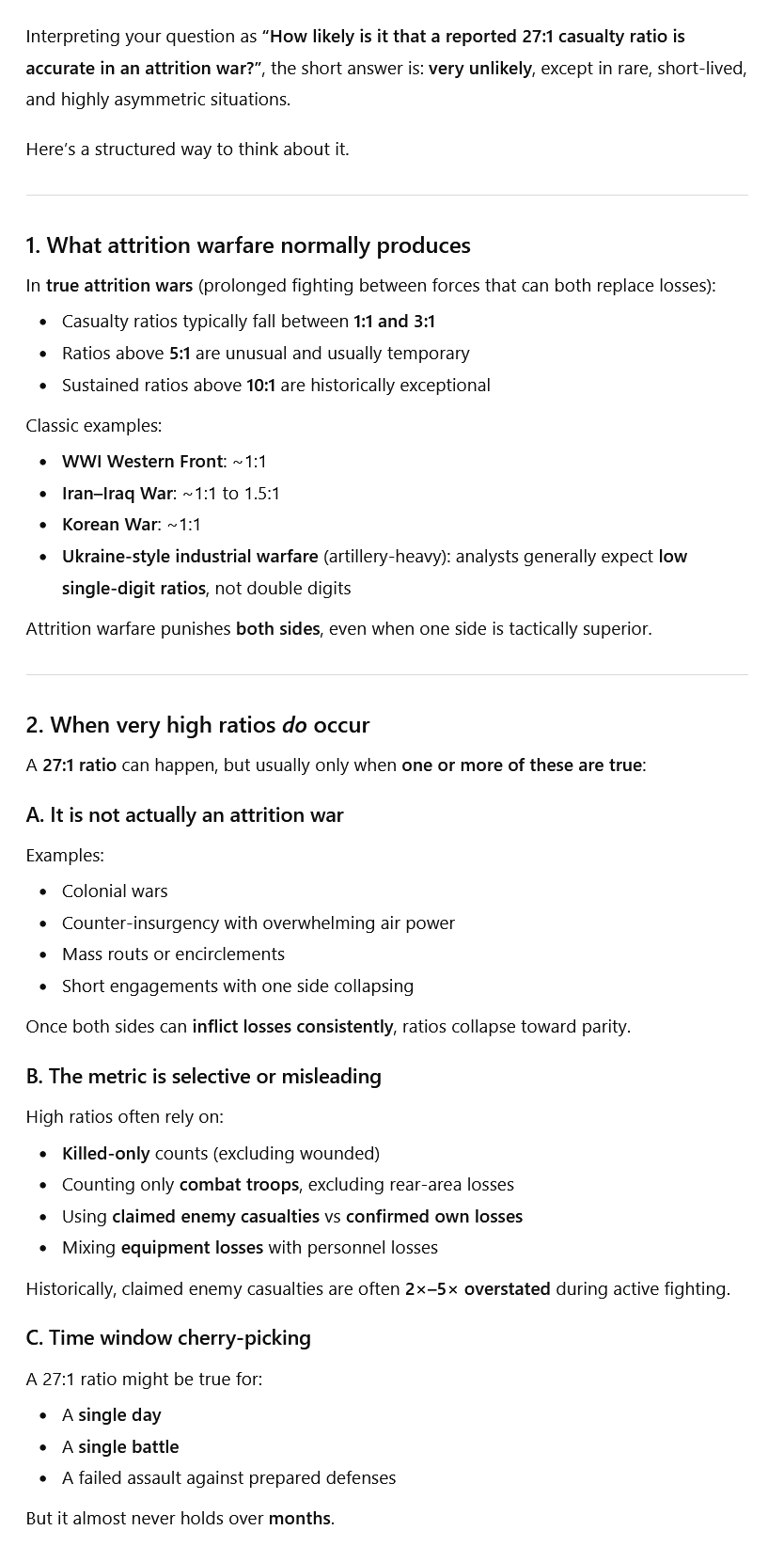 >>526185668this is a war fought by middle aged men on both sides, the vast majority of soldiers are dudes in their 30s, 40s, 50sits a conscious decision since both will face economic collapse post-war if that demographic is gone. however the k/d is still proportionally in favor of ukraine, even if they have much less people overall they are inflicting significantly more damage to russia's demographics than russia is to ukraine's