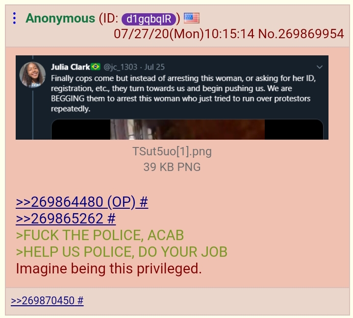>>523605477>I don't understand why cops don't just throw themselves into the line of gunfire or throw themselves on the grenades I toss to sacrifice their lives to save mine, isn't that what they're paid to do?liberals, man