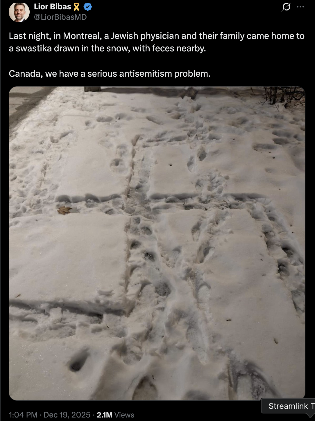 A Jewish family in Canada woke up to a Swastika drawn in the snow and feces outside their homeAnti-semitism has gone too far
