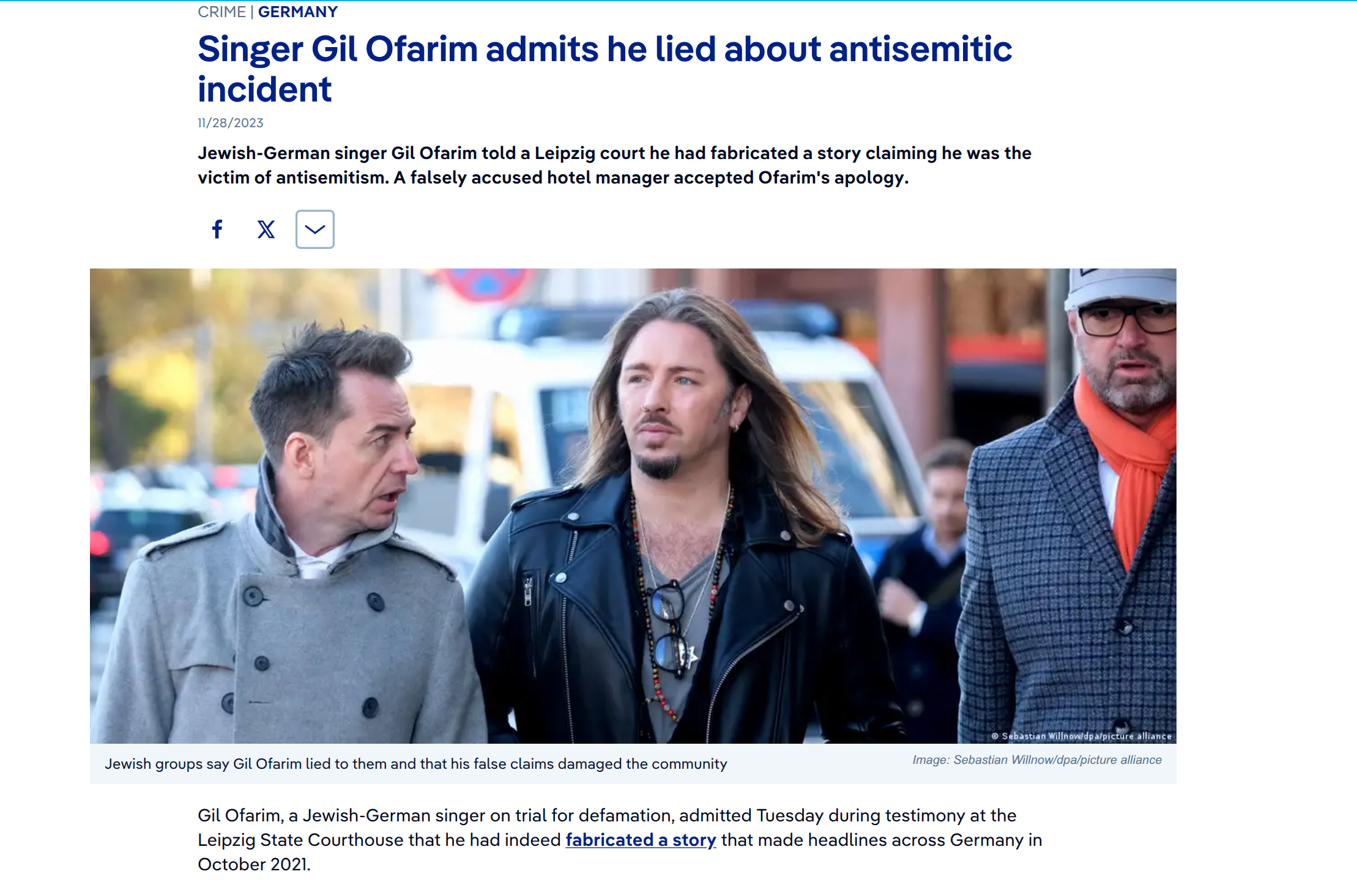 >>524114812>picThe biggest "antisemitism" scandal in recent years was a Jew (Gil Ofarim) claiming that he was told by hotel staff to remove his David star bracelet. It later turned out it never happened, and he was just smearing the hotel employee using lies.