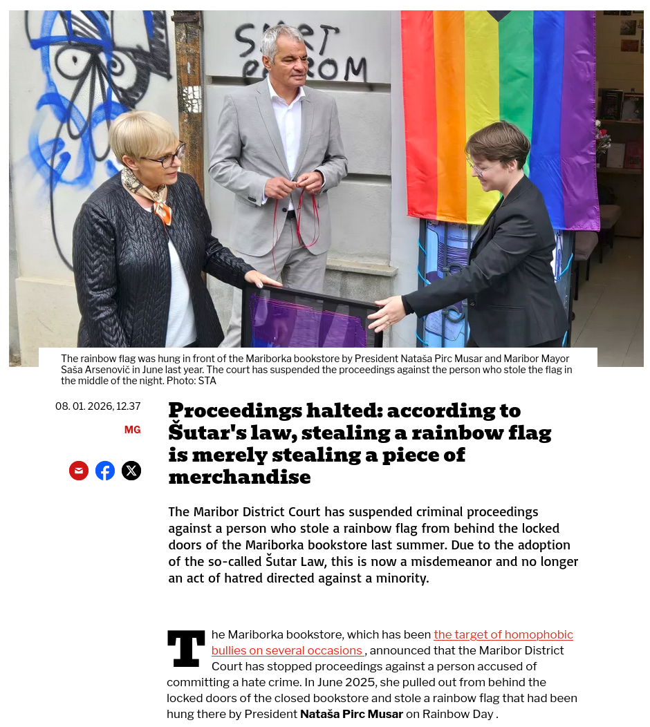 According to the new law, stealing rainbow items from LGBT individuals is not longer a hate crime, or crime at all, only a misdemeanor punishable by a fine.Stealing a rainbow flag is equivalent to stealing any other piece of cloth.Thoughts?