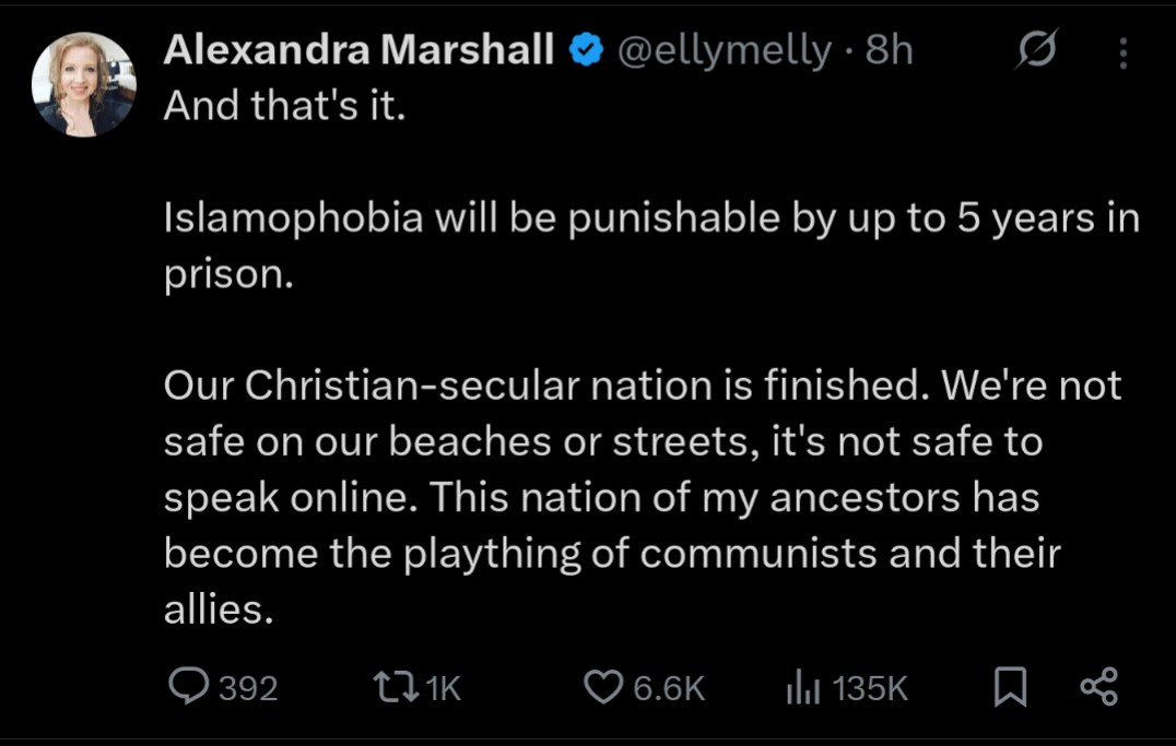 >disliking Islam in any way is now a 5 year prison sentence in Australia