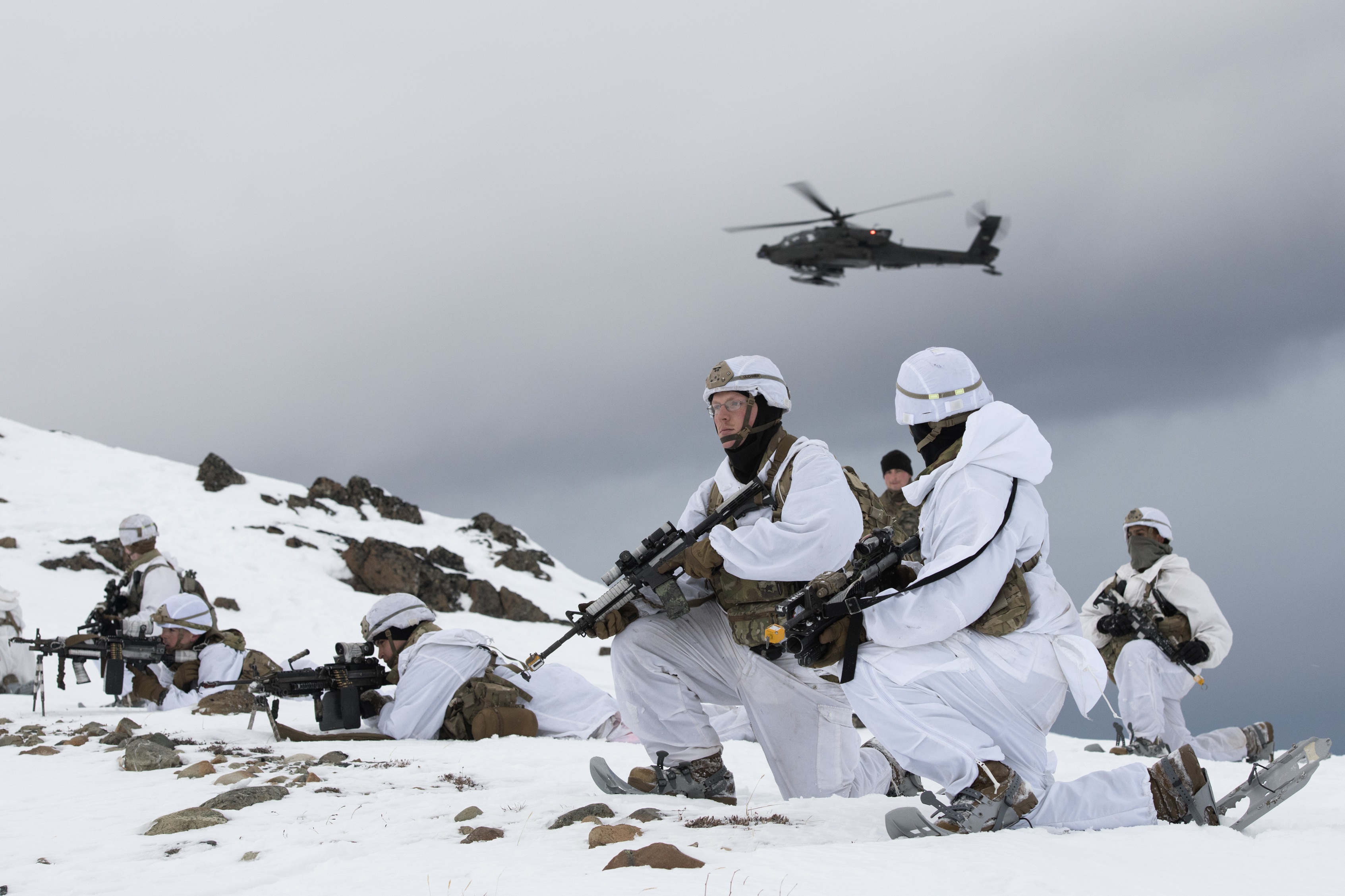 The 11th Airborne Division, "Arctic Angels" are exercising offensive actions in Alaska. They are preparing to invade Greenland