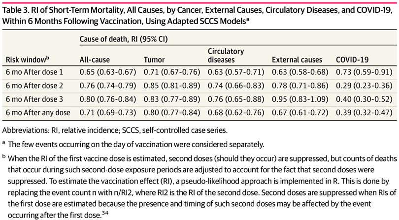 Vaccinated individuals had a 74% lower risk of death from severe COVID-19 and a 25% lower risk of all-cause mortality, with a similar association observed when excluding severe COVID-19 death.https://jamanetwork.com/journals/jamanetworkopen/fullarticle/2842305Seems like better data than that used by opponents of the vax, no?