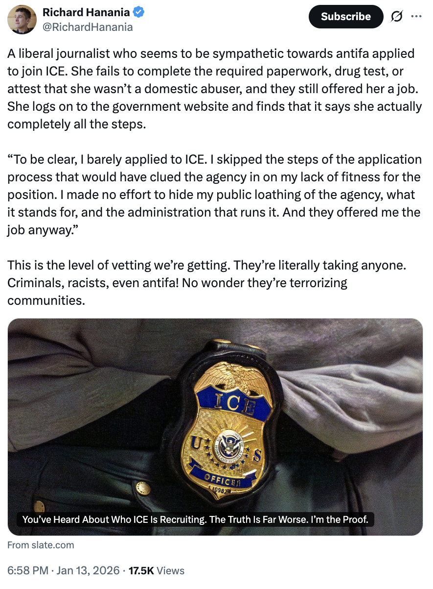 The ICE hiring standards are so low that they will hire literal antifa