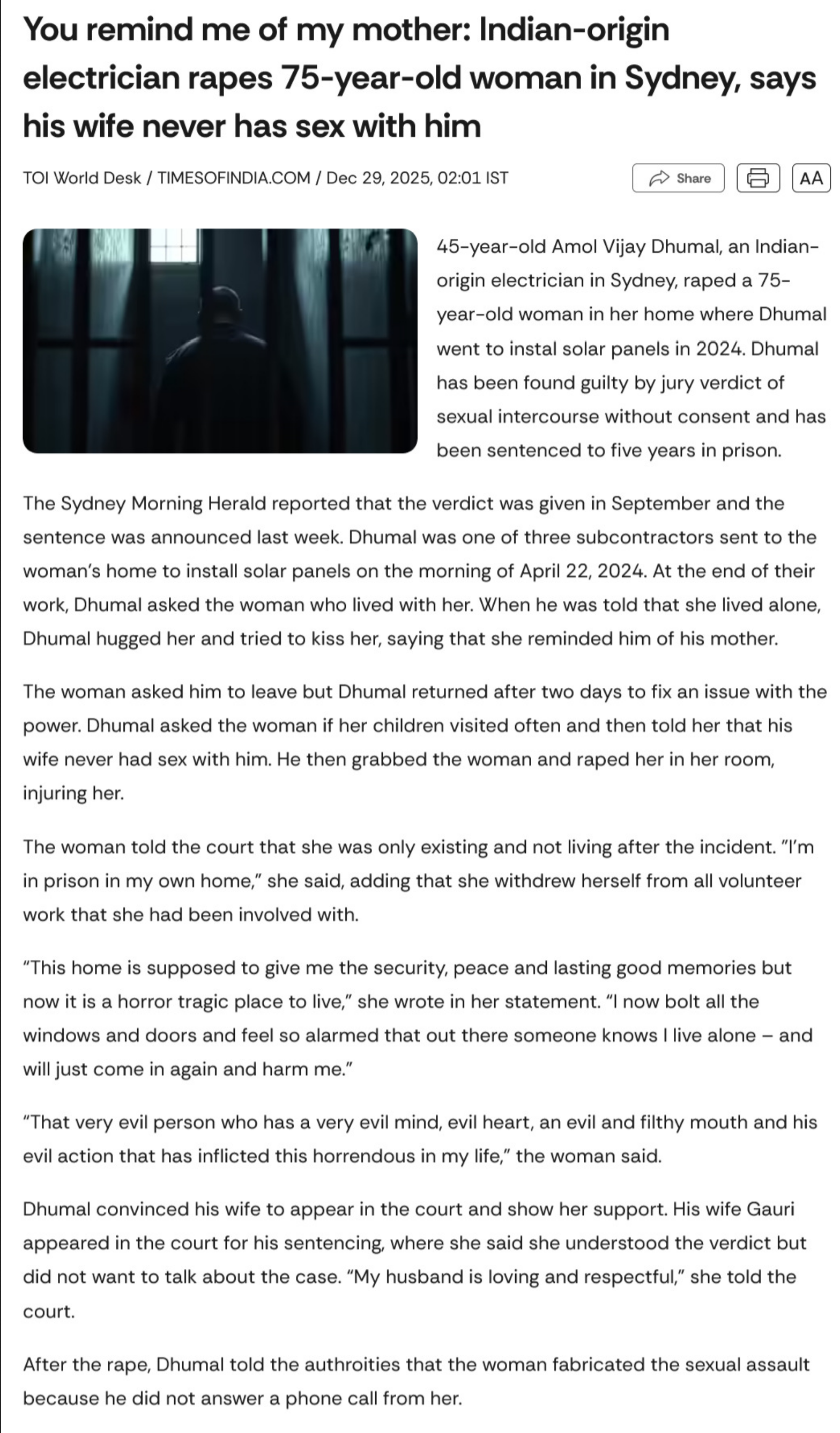 An Indian electrician raped a 75 year old woman after installing solar panels on her househttps://x.com/southasiaindex/status/2011064188857397417
