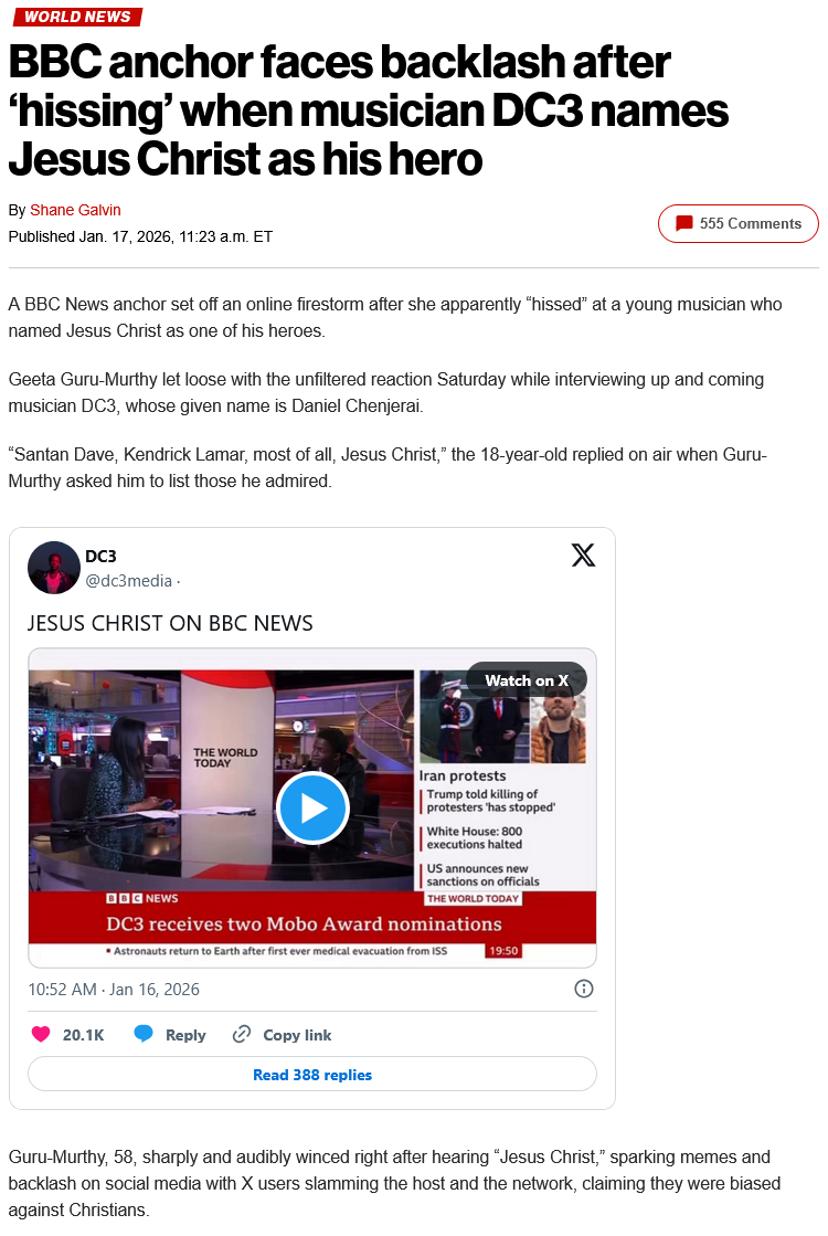 https://nypost.com/2026/01/17/world-news/bbc-anchor-faces-backlash-after-hissing-when-musician-dc3-names-jesus-christ-as-his-hero/https://x.com/dc3media/status/2012206391818104855