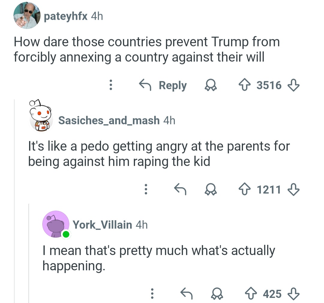 >Population of Greenland: 53,000>Price of Louisiana Purchase (adjusted for inflation): $430 million>$430 million / 53,000 = ~$800,000You're telling me that if Trump promised every Greendlander $800,000 in exchange for voting their country into USA, they would refuse? Why am I the only one in the world who ISN'T retarded?