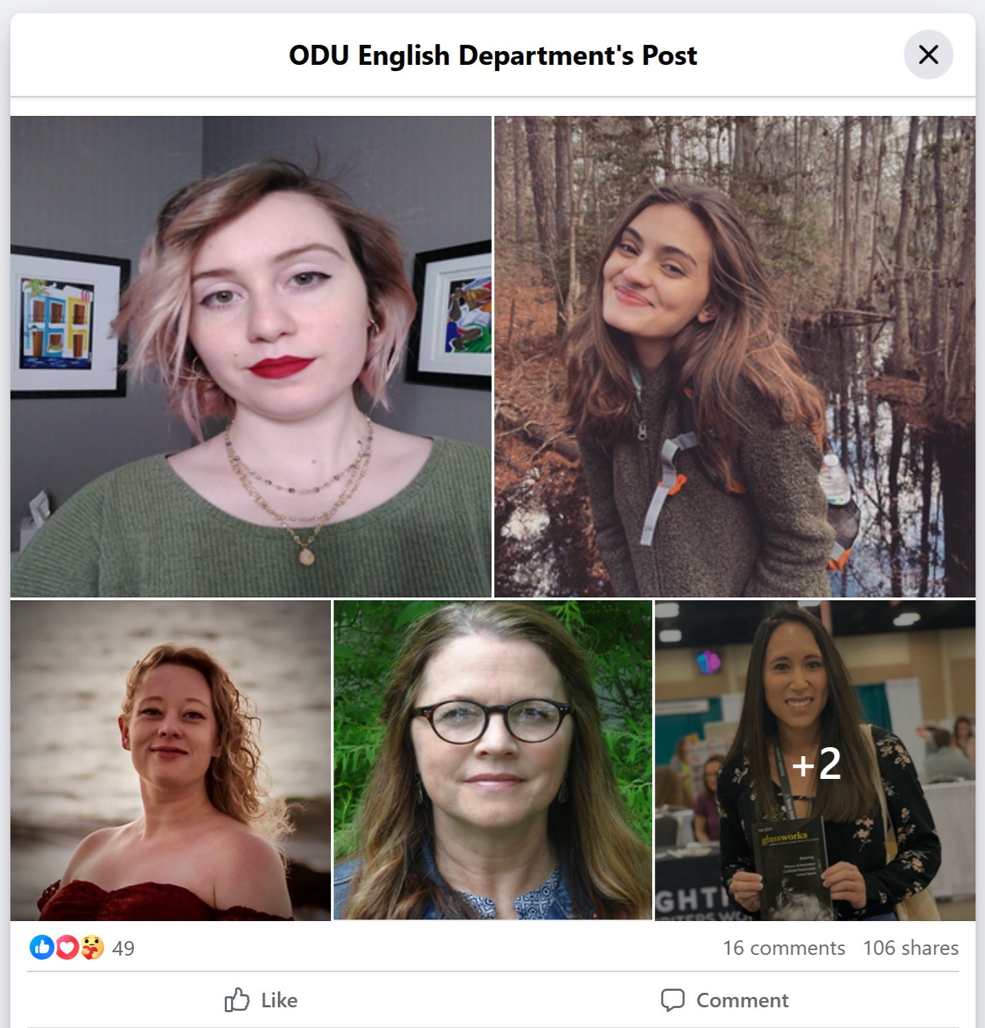 >>526072265Here mate. The photo of both women appeared in a 2020 Facebook post from Old Dominion University announcing the winners of a poetry prize, hence the mix up. www.facebook com/oduenglishdept/posts/pfbid02JqUgwhEtEB4haHrKABYusKEbVkteJ6suAGCzLsiBtBRyVEngs9U2JKMa6srryoEGl