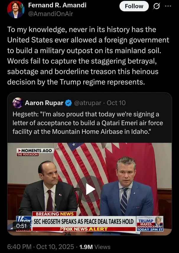 What do we think about this?https://www.cnn.com/2025/10/10/politics/qatar-air-force-facility-idaho