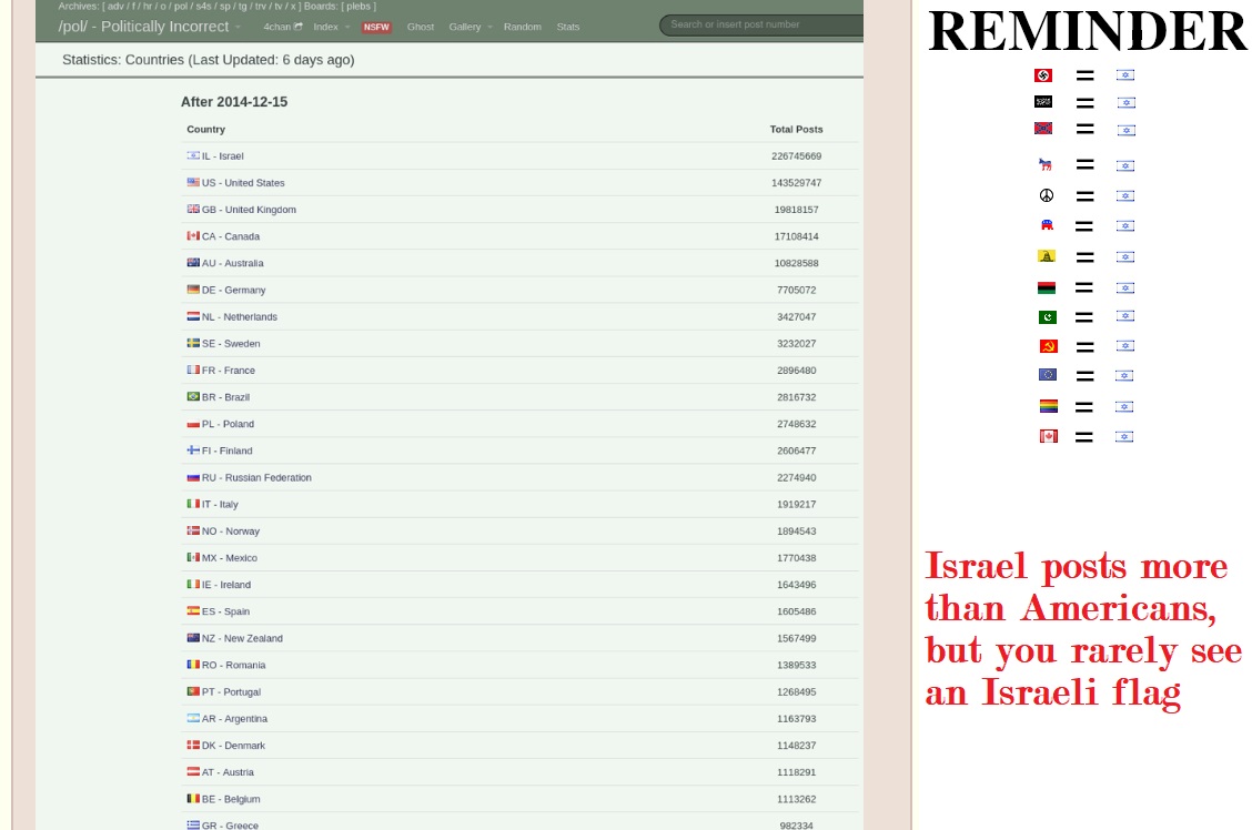 The biggest poster happens to be the same country that has the most jews, commits genocide, rapes babies, bribes governments, and murders people: israel The second biggest poster is the USA, which has the 2nd biggest jewish population in the world. There are a LOT of jews here. Being jews, they lie and claim that the meme flags are jeets. Nope.