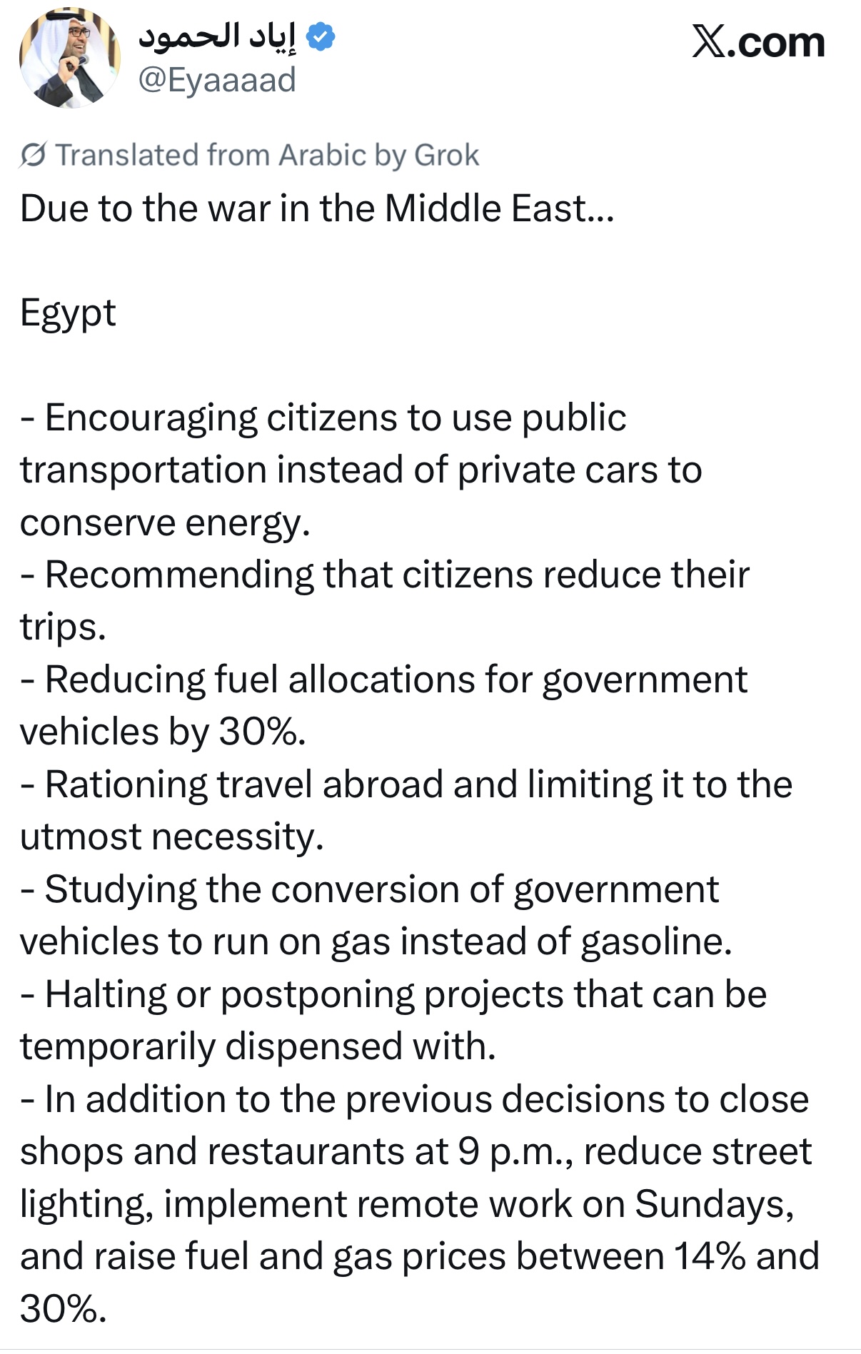 We will have 100 million starving Arabs at the gate of Europe if the war goes on