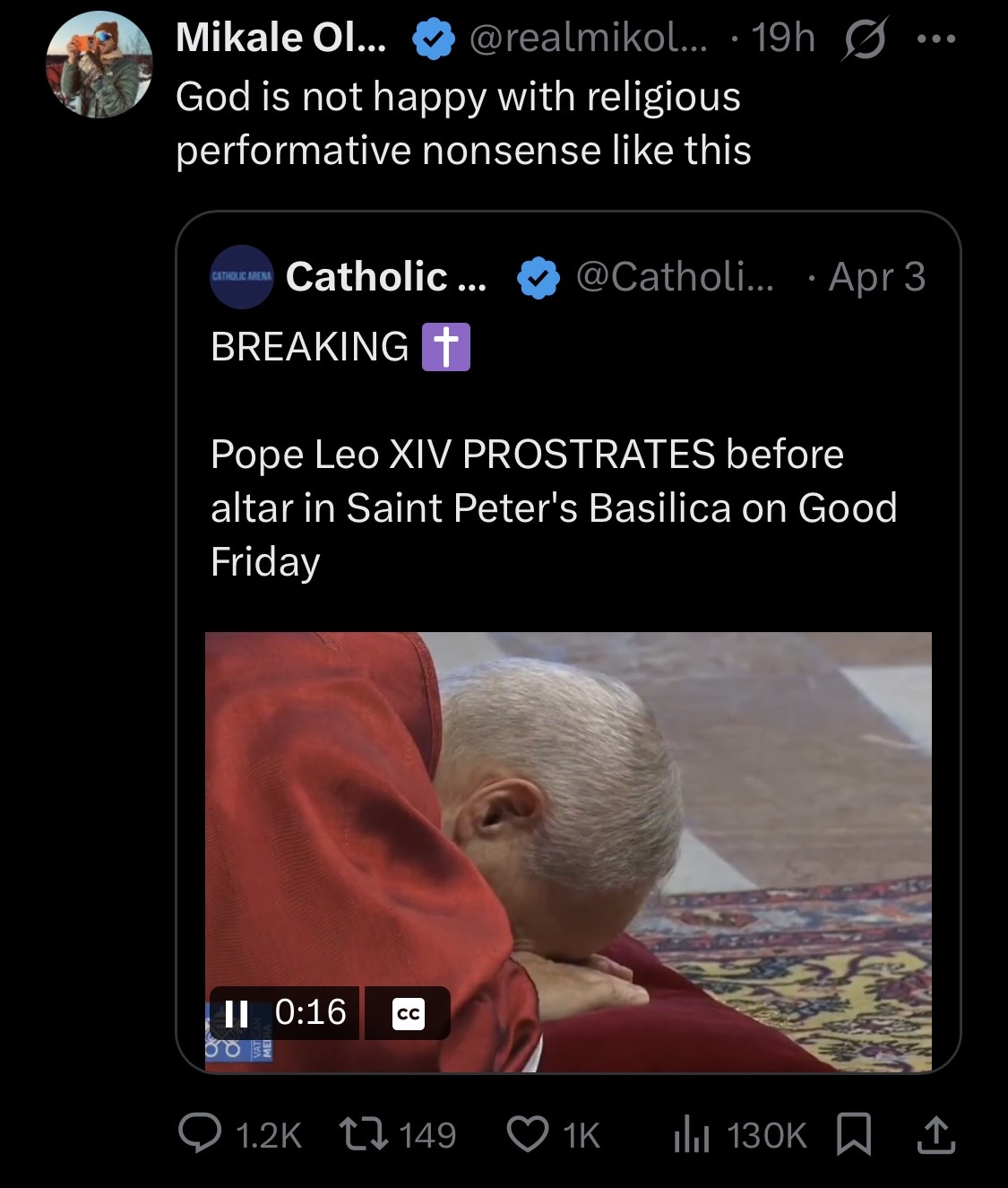 >>532386418>God is unhappy with the pope>trust me, pastor Bubba told me so