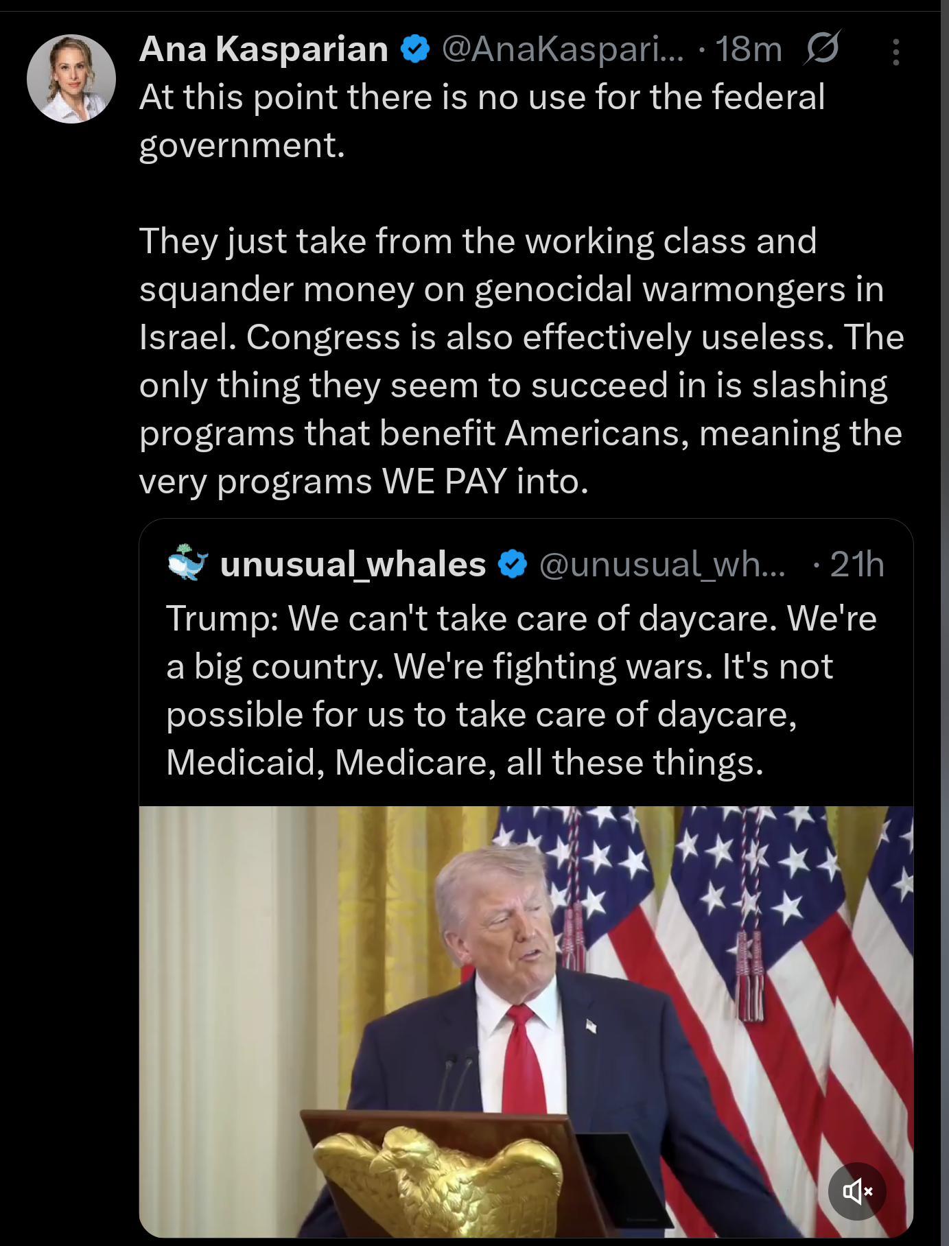 >>532221439The Federal government doesn't need tax revenue in order to spend. It issues the currency. It doesn't need to tax, it doesn't need to sell bonds, it can just issue the money.So Trump and Kasparian are both misrepresenting what the government is capable of, spending wise. That's very difficult for most normalfags who listen to people like Sean Hannity type conservatives, who constantly drill it into your head that the government needs to "tax and borrow" to spend. Or you listen to people like Bernie Sanders, who also constantly reinforces the notion that we need to tax billionaires to "raise money" for the programs he proposes.The only relevant question when it comes to what the government can spend is how many real resources are at its disposal? Real resources. Money is not a real resource, a medium of exchange, or a store of value. It is a unit of account.