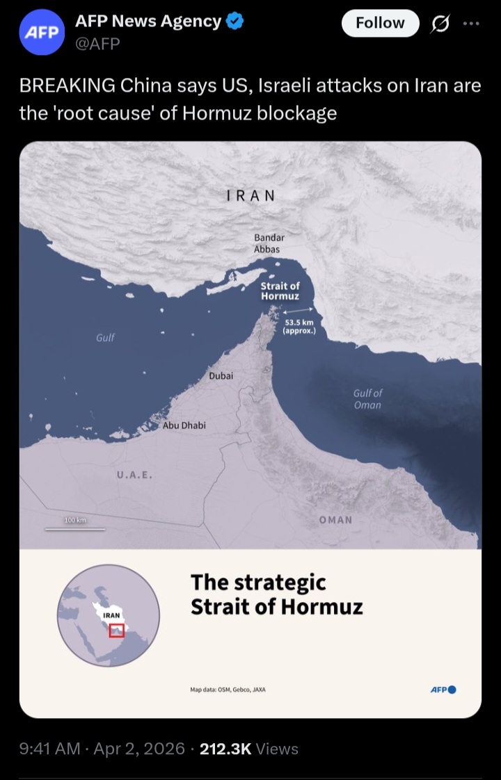 China blames US/Israel for Hormuz blockade. They are right and stating the obvious xD
