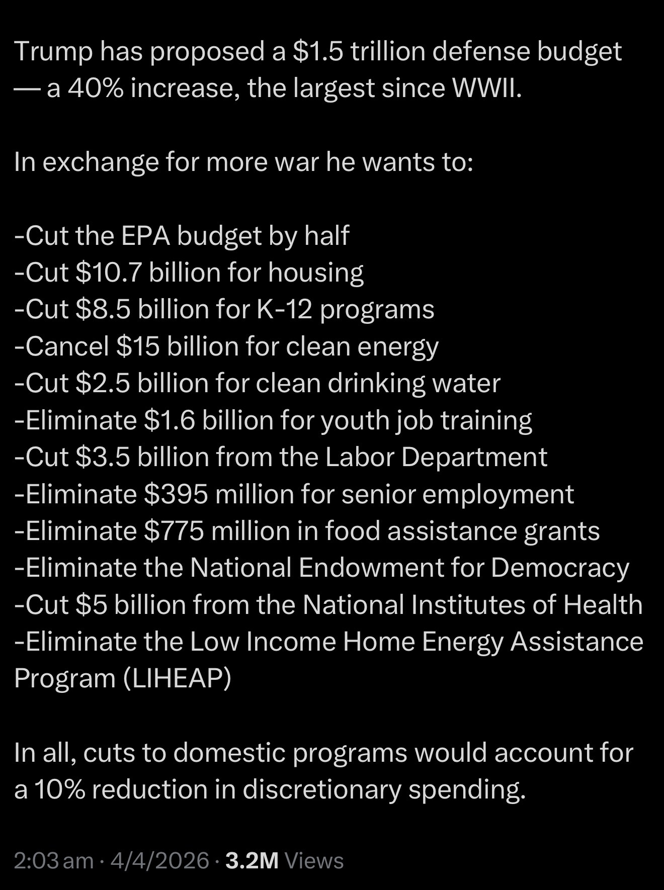 >>532348415You left out he is Requesting an additional 10 billion dollars to "make Washington D.C. more beautiful" Already the highest income area of the country, unless its shipping all the niggers to Africa I don't see any justification for it.