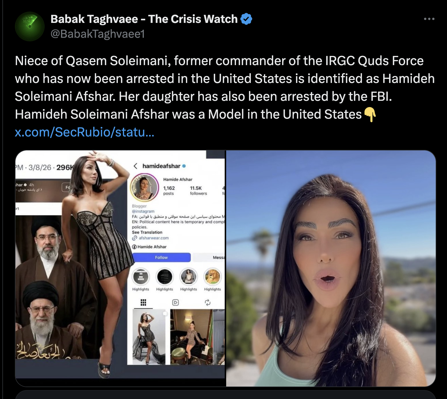 Iran has its own little princeling class same as China and Russia do, and they all live in the West. Xi's daughter lives in America. Putin's daughter lives in France. Lavrov's daughter lives in the US. And a bunch of kids of Iranian IRCG elite live very un-Islamic lives in the West as well.
