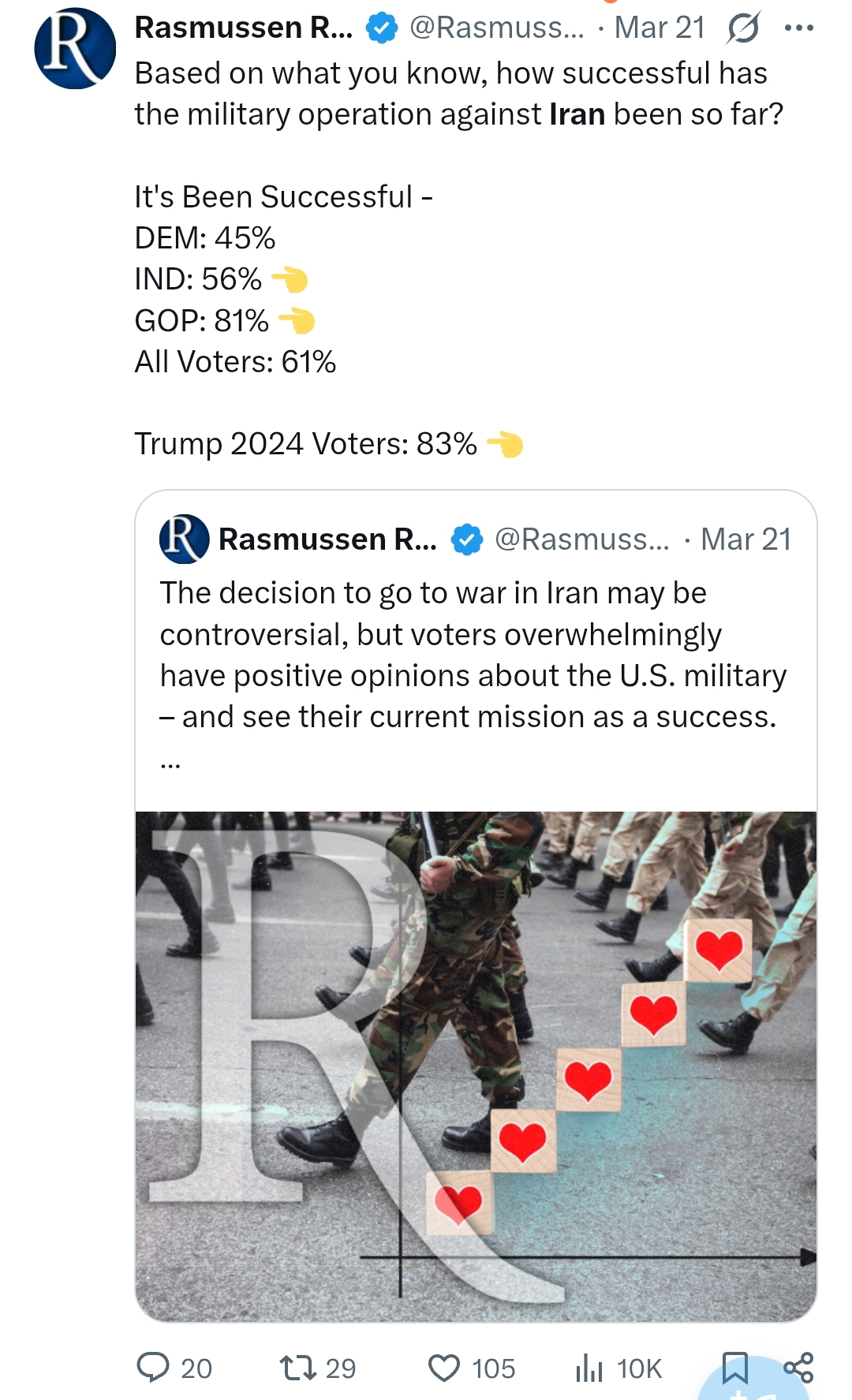 >>532359418I think in some ways he’s the oppositeAmerica is getting weaker over time due to multipolarity so this year was better than 2030 for an Iran war. The war was going to happen eventually, they’ve known this since 1979. Yeah it’s retarded but if the US is an empire, it still has its own goals and the president is just like a CEO for a mega corporation. Russia and China creating a multipolar world worked in ZOG’s favor to an extent, Israel got away with destroying Gaza because that’s the state of the world now. They’re going to try to do the same to Iran. It’s late in the life cycle of an empire, it will start acting more aggressively which is also stupid, but at the same time the unipolar moment is over