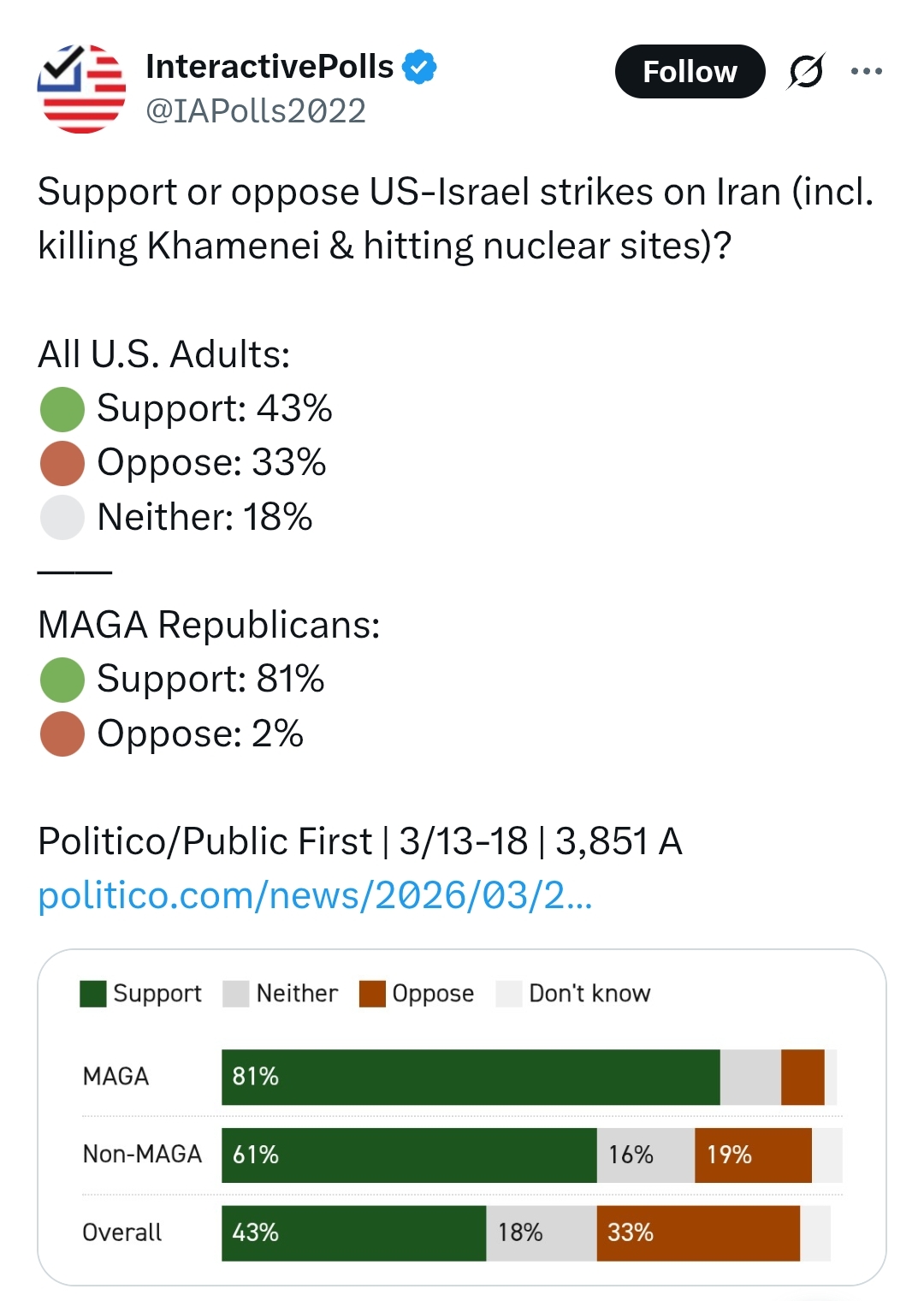 >>532358490>JUST IN: Iran fires 23 ballistic missiles and 56 drones at UAE today.Iran isnt israel just shooting at civilian tent campsits saving the missiles for the unimaginably obvious boots on the ground invasion coming the moment the holiday weekend ends in America