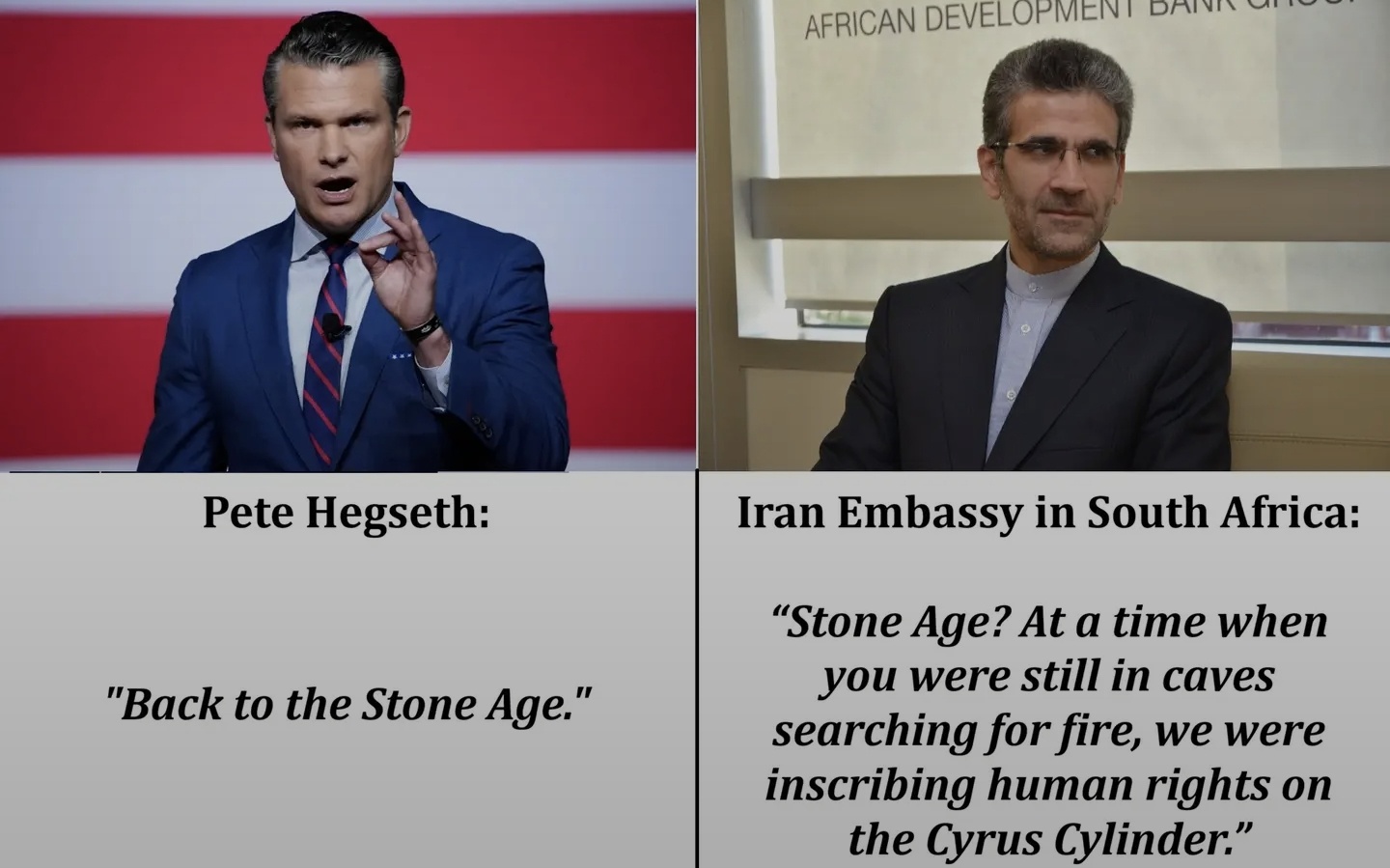 >>532345500it's extremely difficult to put a quote from pete hegseth next to a quote from someone who isn't pete hegseth and have pete hegseth not come out of it looking like an idiot